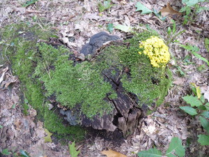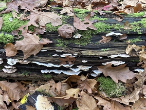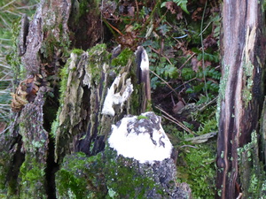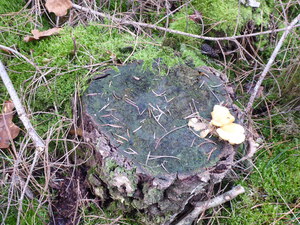 Een boomstronk met groenachtige schimmel, 20 september 2025