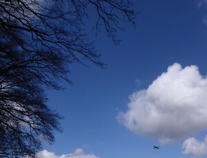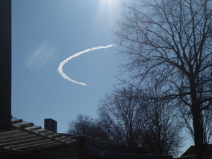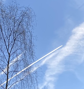 Strepen van vliegverkeer 18 maart 2026 boven Veldhoven.