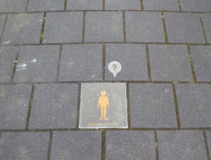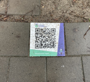 Informatietegel. 22 februari 2025. Het bankje is weg en in mei stond het er weer een nieuw bankje met een mooie molen erop.