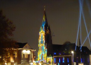 De Ceciliakerk mooi verlicht in Veldhoven dorp 9 november 2025