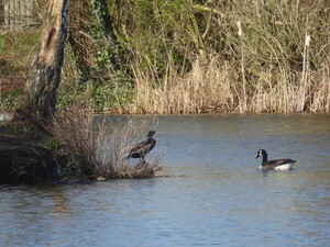 Canadese gans 5 maart 2026 en een aalscholver.